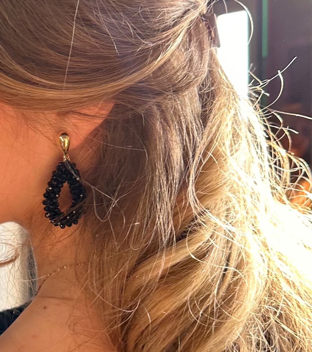 Die Nylaa Teardrops Mini in schwarz strahlen luxuriöse Eleganz aus. Das warme Schimmern der schwarzen Glitzerperlen verleiht jedem Outfit einen edlen Touch – stilvoll, zeitlos und modern zugleich. Die vergoldeten Stecker sind hautfreundlich und angenehm zu tragen. Länge ca. 4 cm.